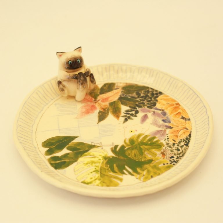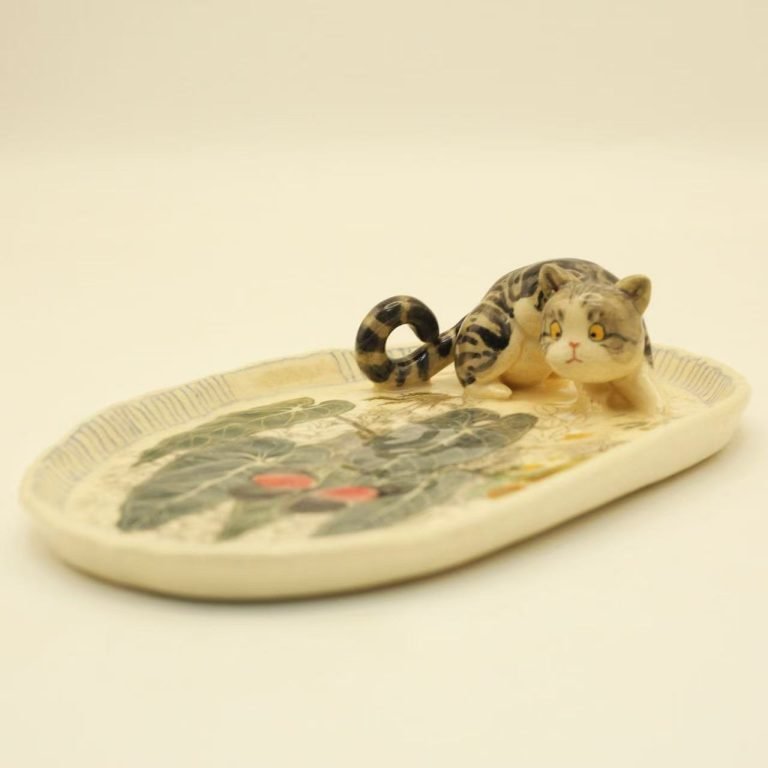Handmade Ceramic Pet Plate For Nosy Cat