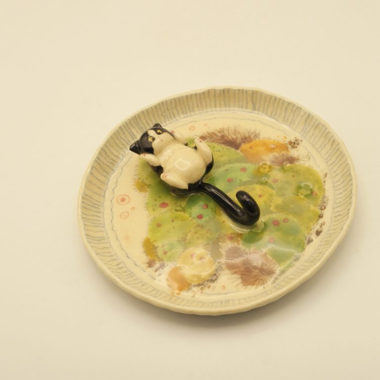 Handmade Ceramic Pet Plate For Silly Cat