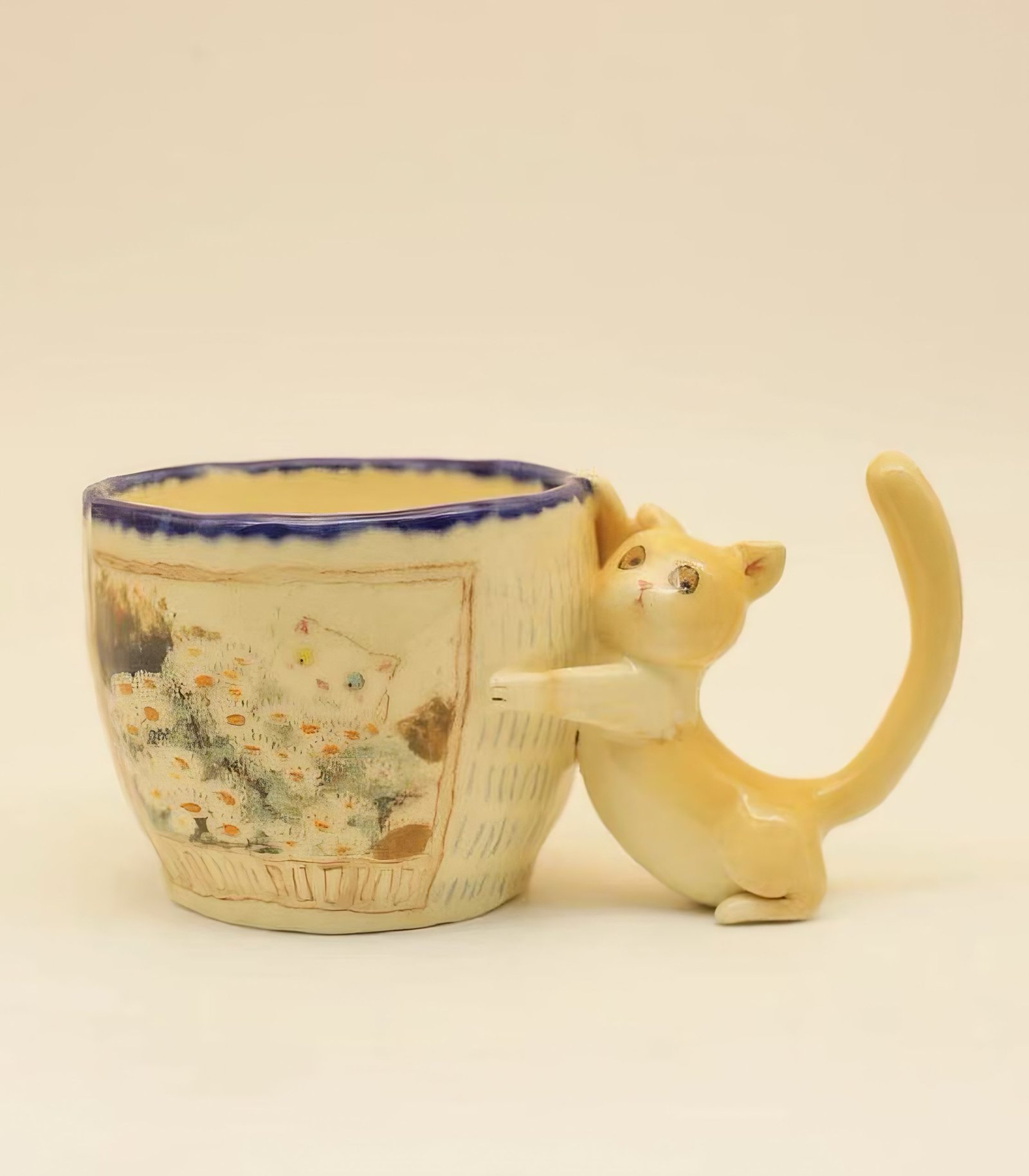 - Features:Â Hand-crafted cat handle, hand-painted details