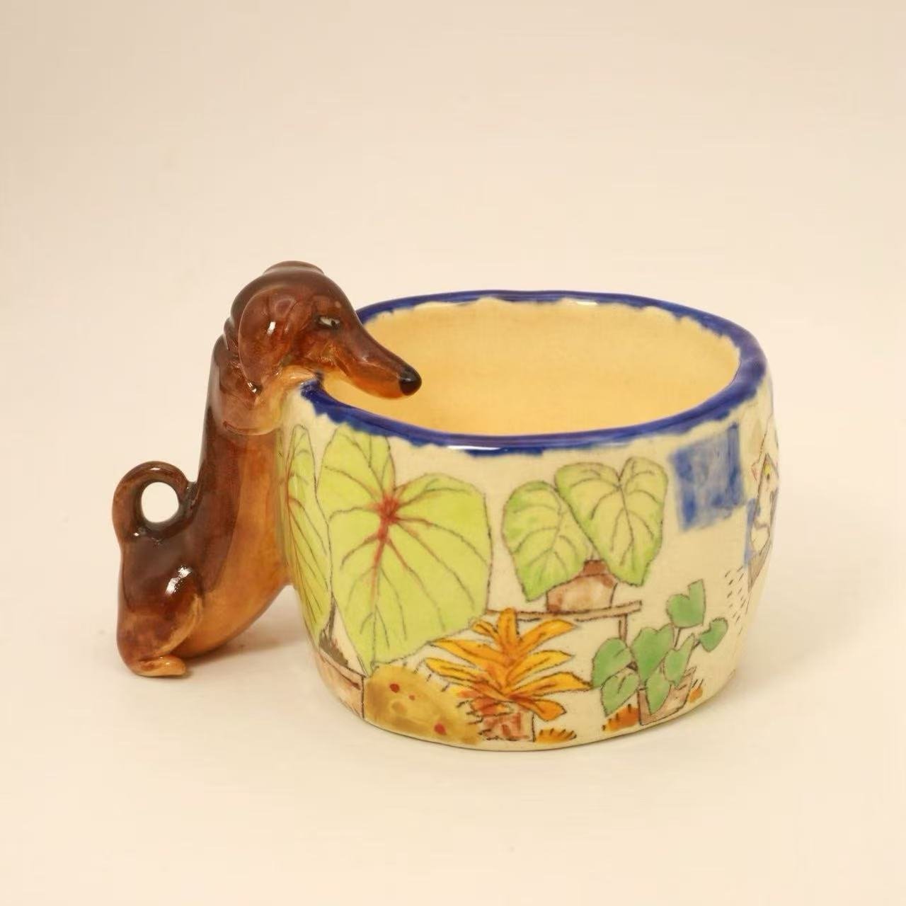 Handmade Ceramic Pet Mug For Dachshund Dog