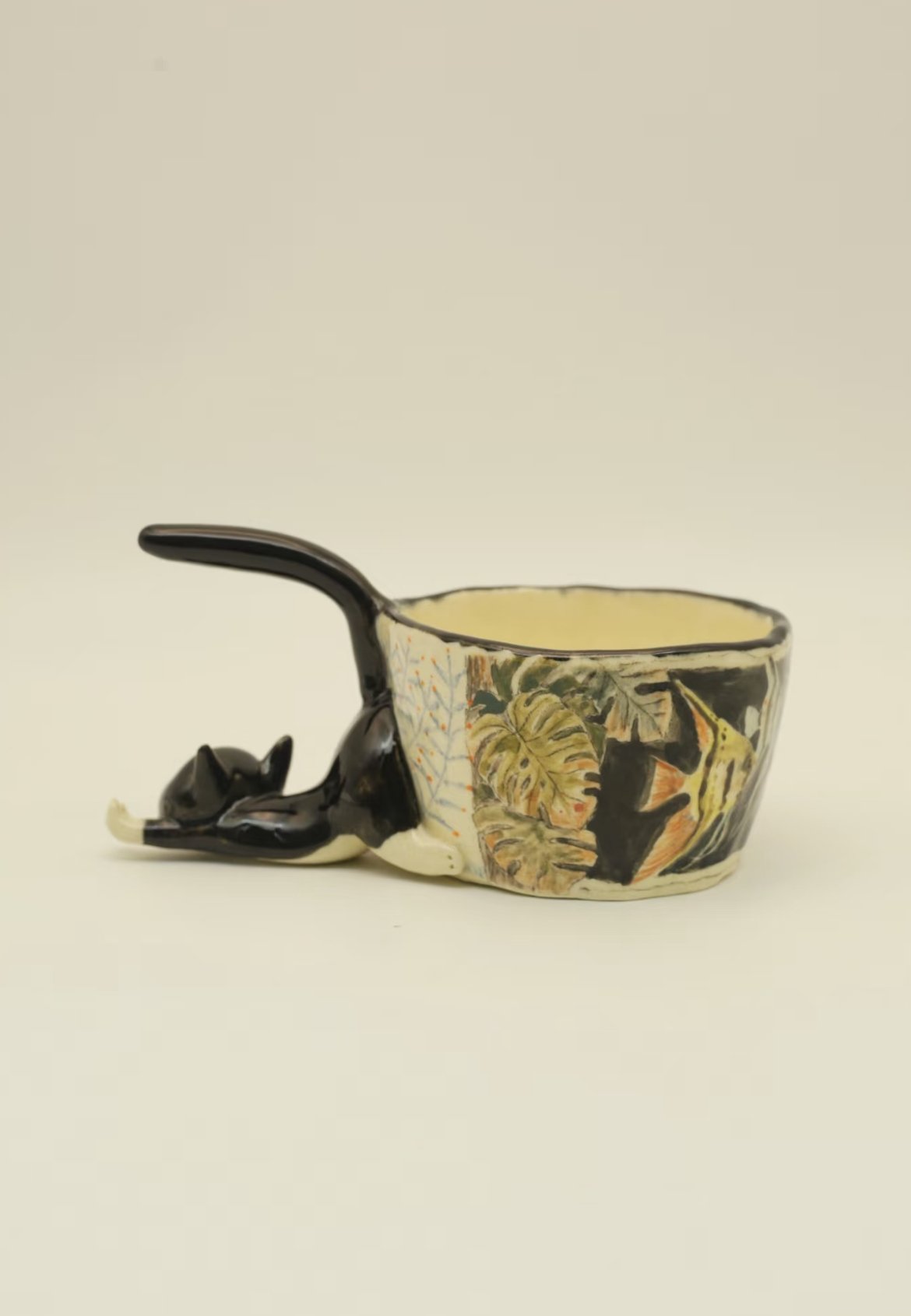 - Features:Â Hand-crafted cat handle, hand-painted details