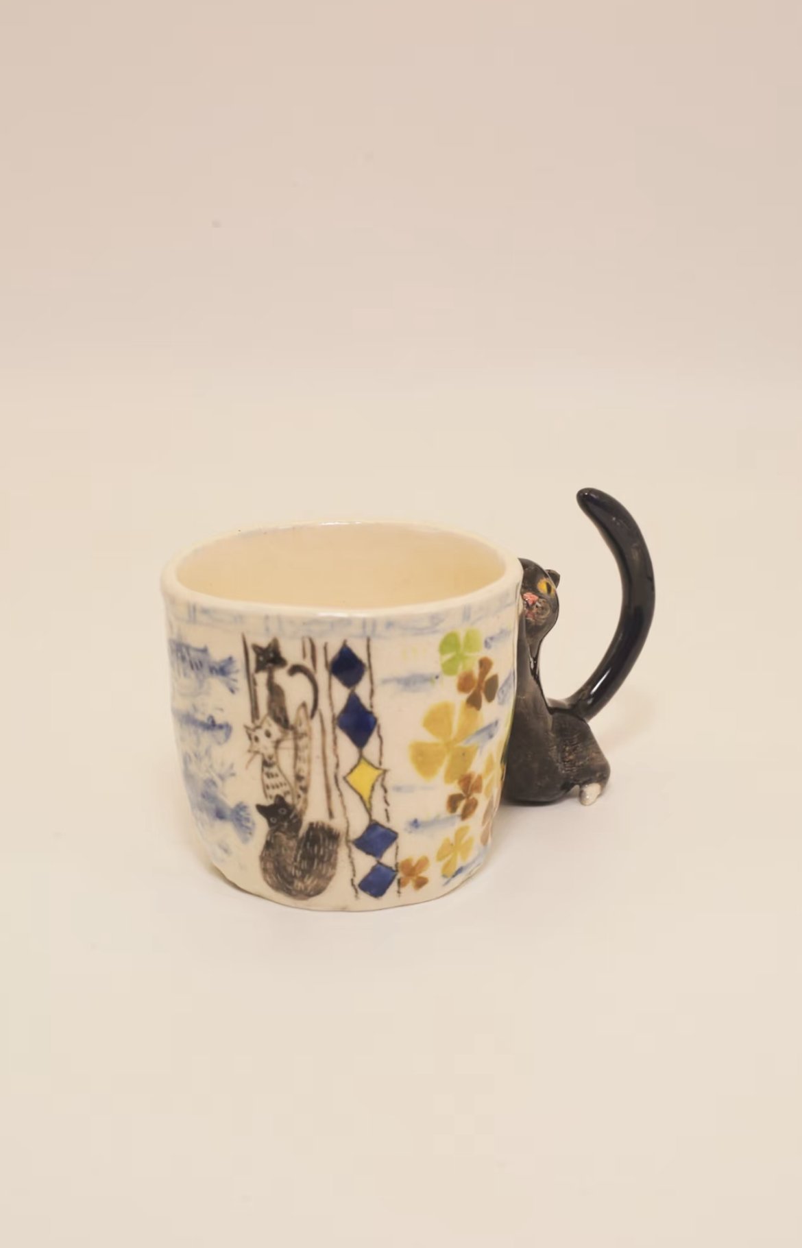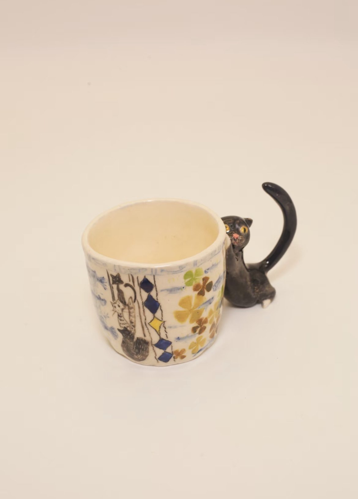 - Features:Â Hand-crafted cat handle, hand-painted details
