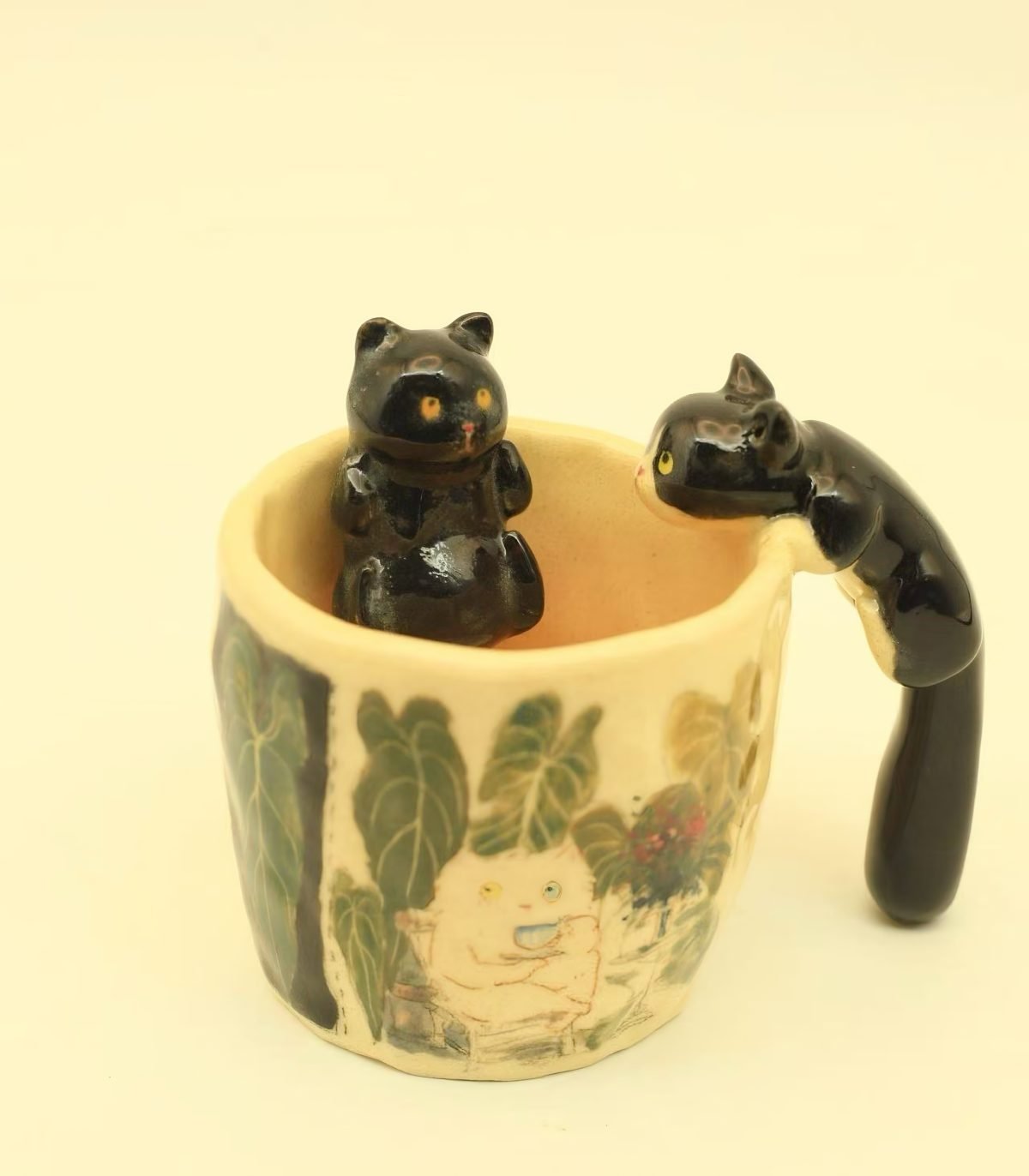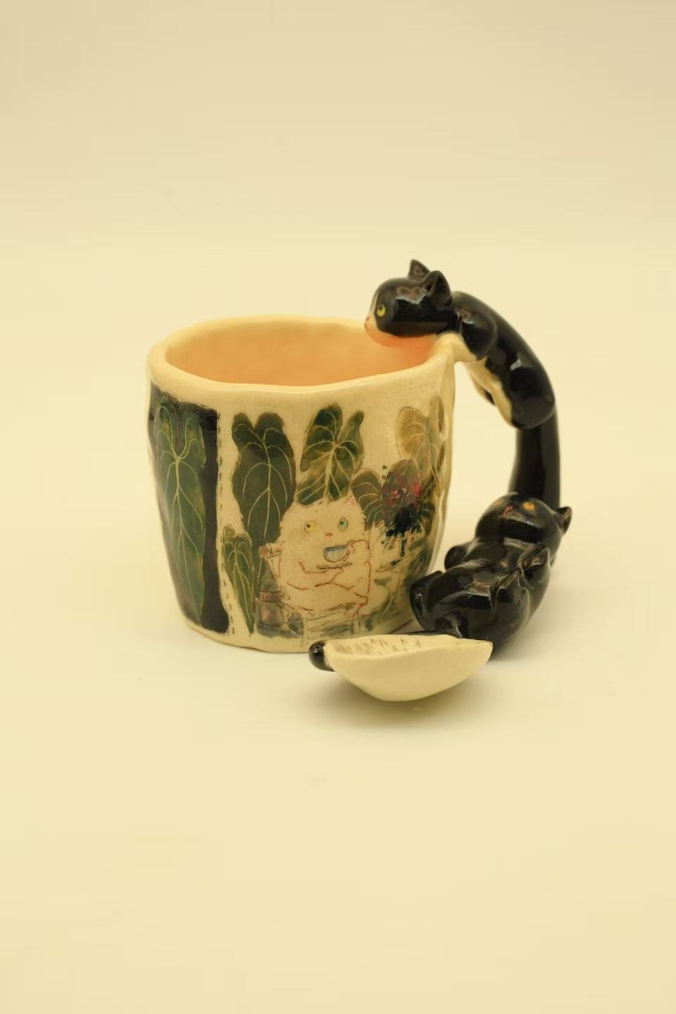 - Features:Â Hand-crafted cat handle, hand-painted details