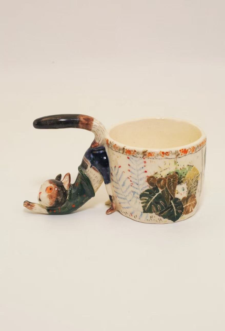 - Features:Â Hand-crafted cat handle, hand-painted details